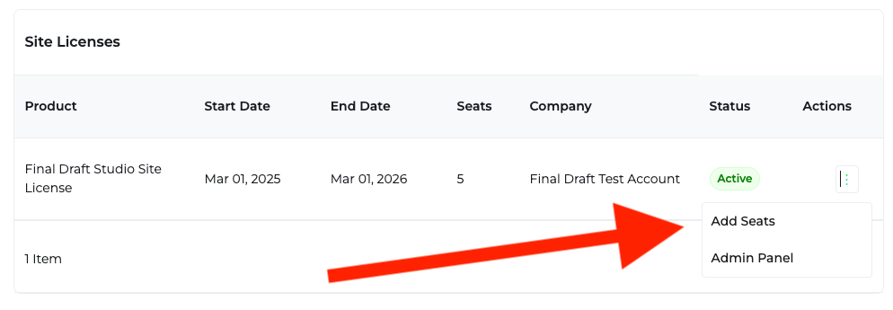 Adding seats to a currently active Final Draft site license is possible following the steps below. At this time, only credit card or Paypal is accepted for additional seat orders through our website. Should you require alternate payment methods (Purchase Order, ACH) please reach out to our team at licensing@finaldraft.com so we can best accommodate your request. NOTE: PO/ACH orders for additional seats must be minimum (3) additional seats to fulfill the order.
