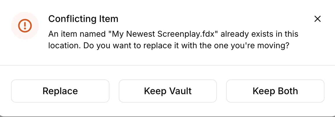 Duplicating files within Final Draft Vault without downloading/reuploading will be allowed in a future update.