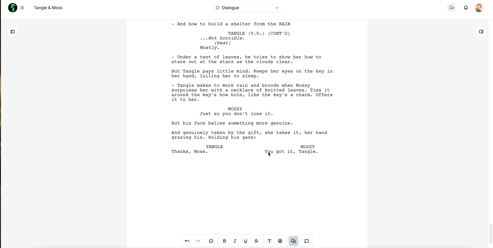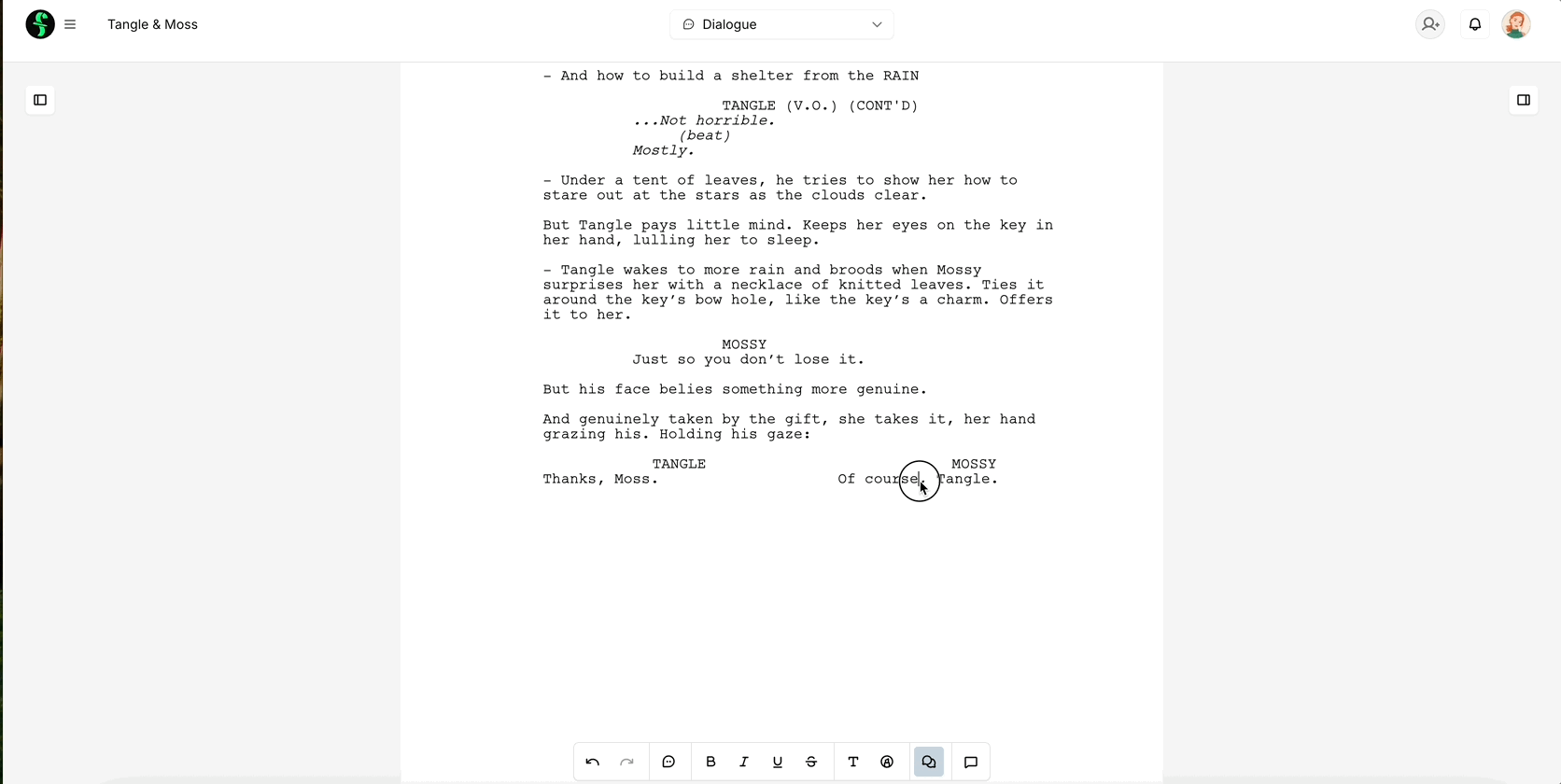 You can then click the dual bubbles or press CMD+D (Mac) or CTRL+D (Windows) to dual the dialogue.