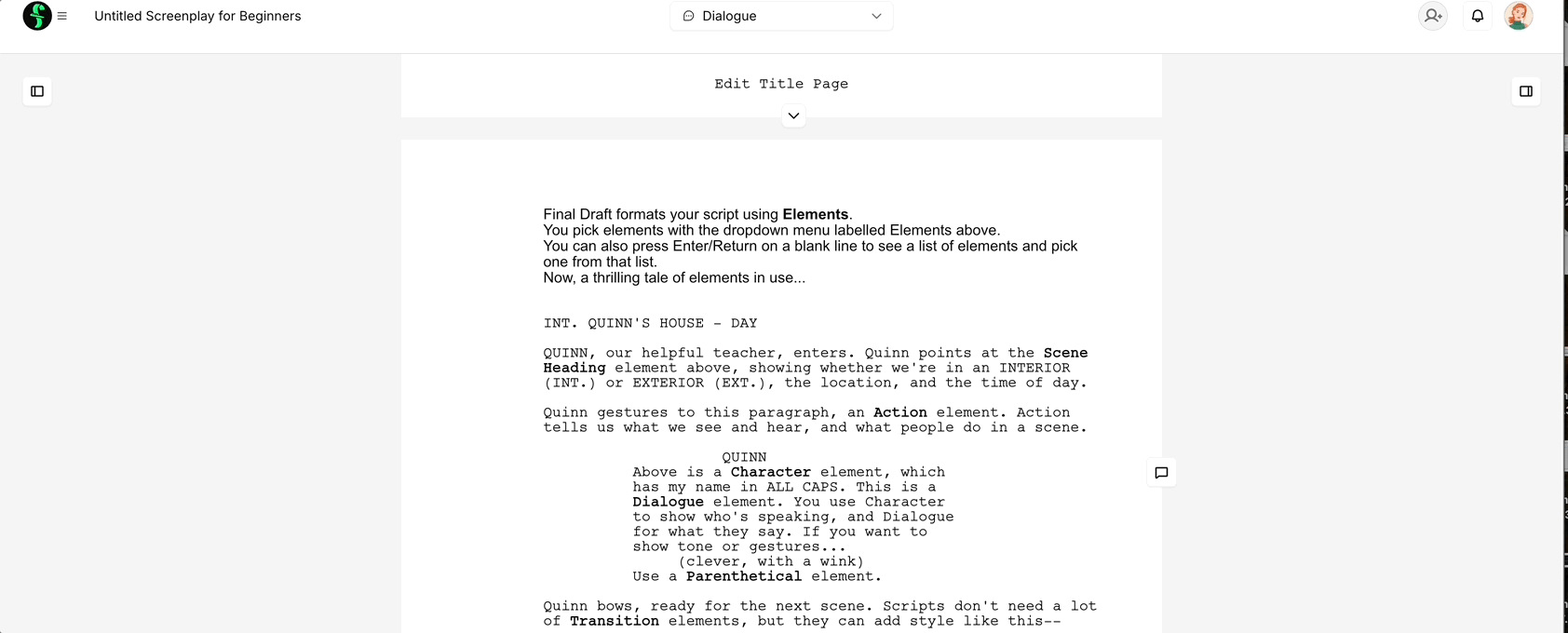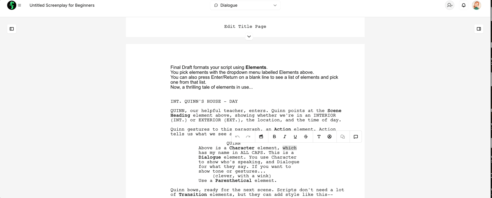 To insert a ScriptNote in Final Draft Writer, place your cursor where you would like the ScriptNote to go. You can also double-click to highlight a specific word or section.
