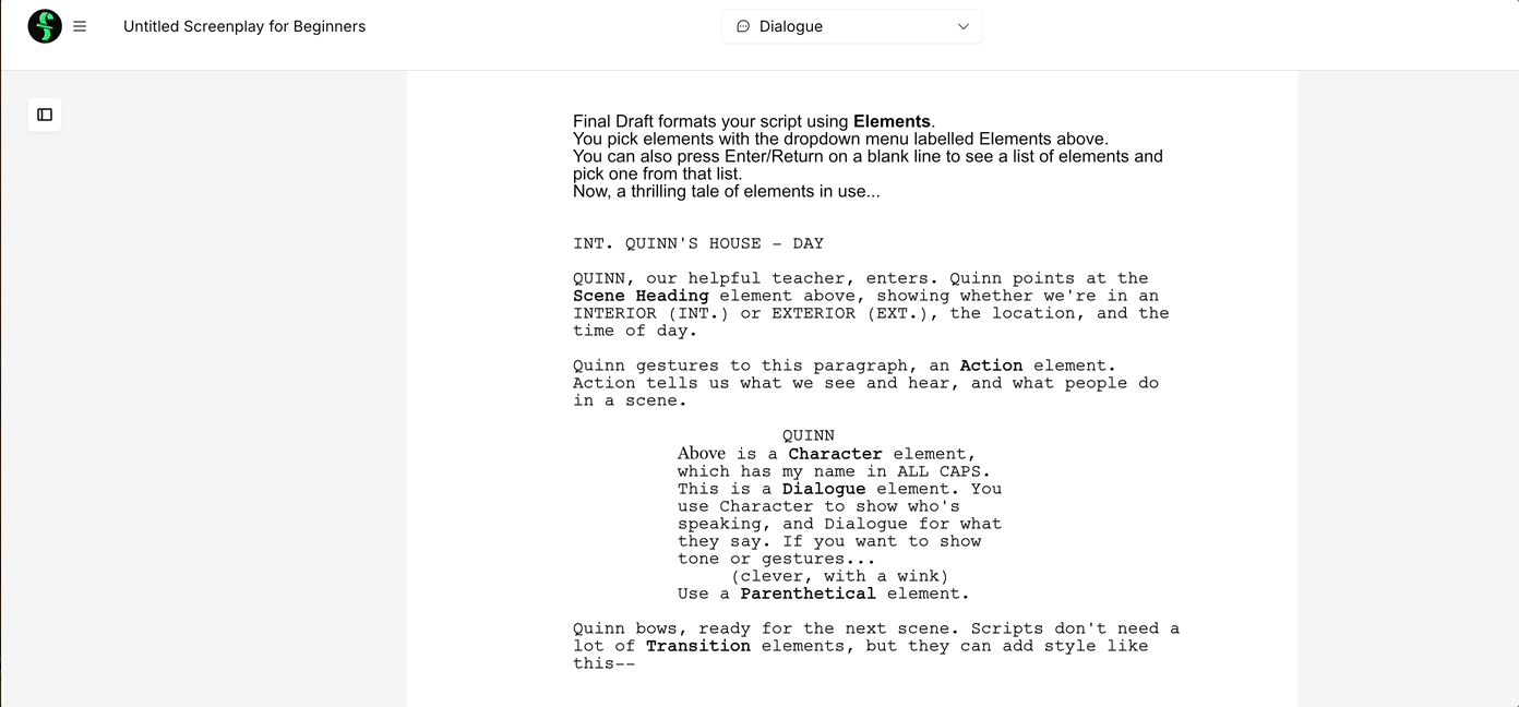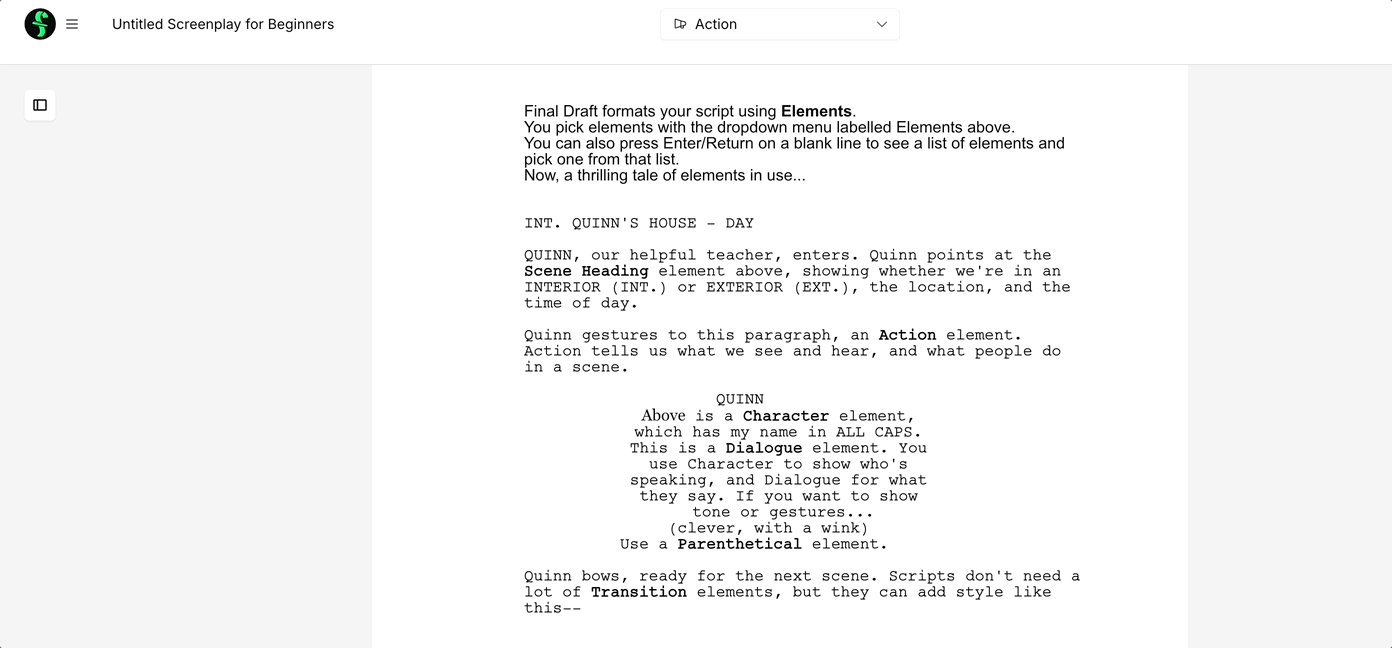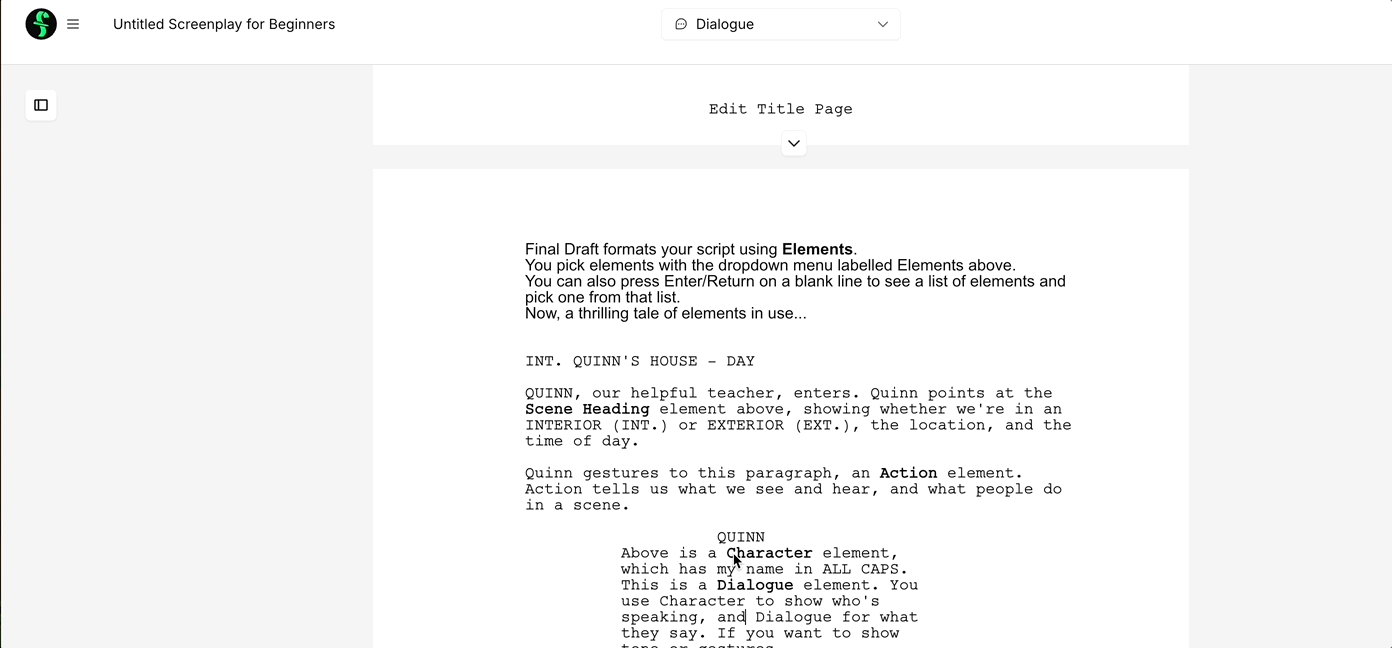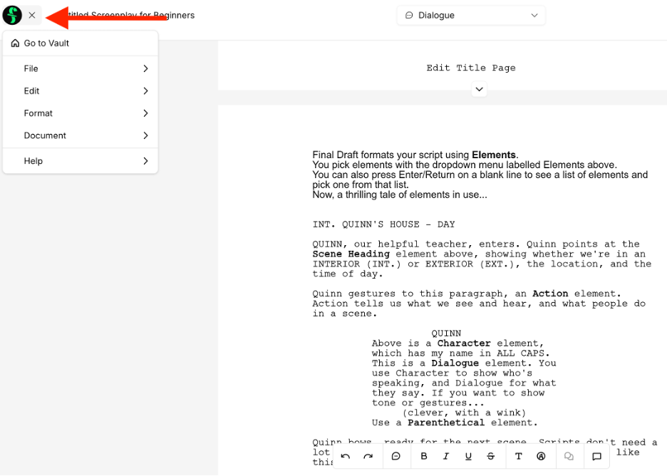 There are several different ways you can change the look of the text in your Final Draft Cloud document. These can be accomplished with a mix of your Format menu and Floating Toolbar.