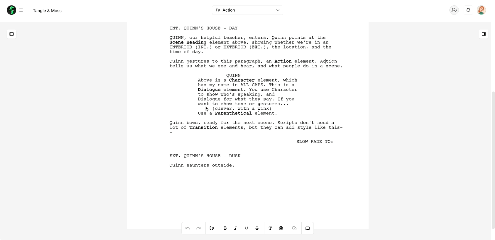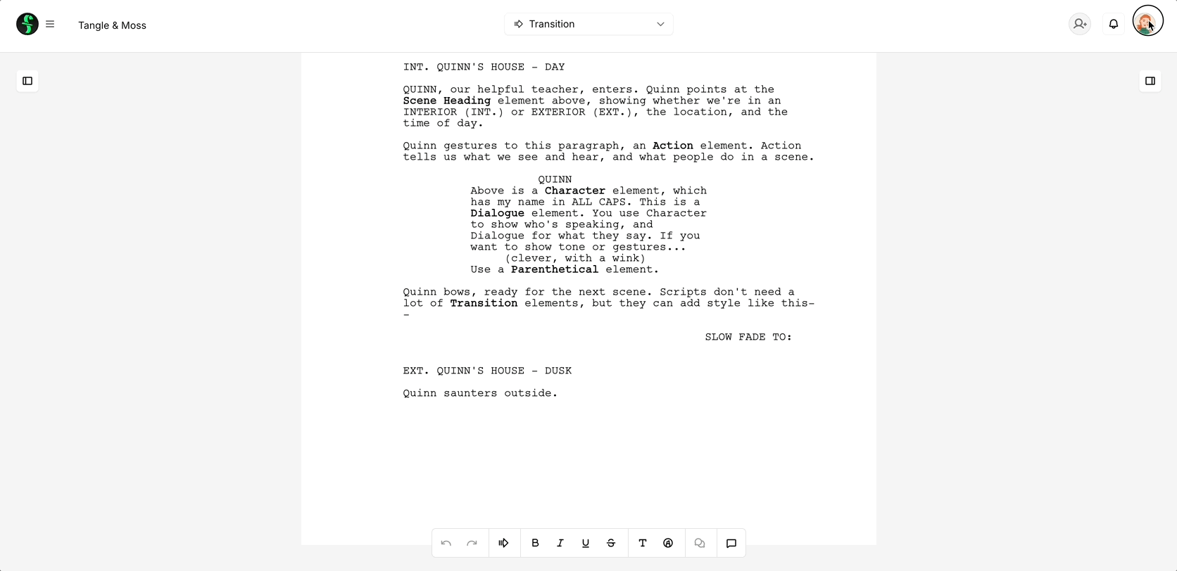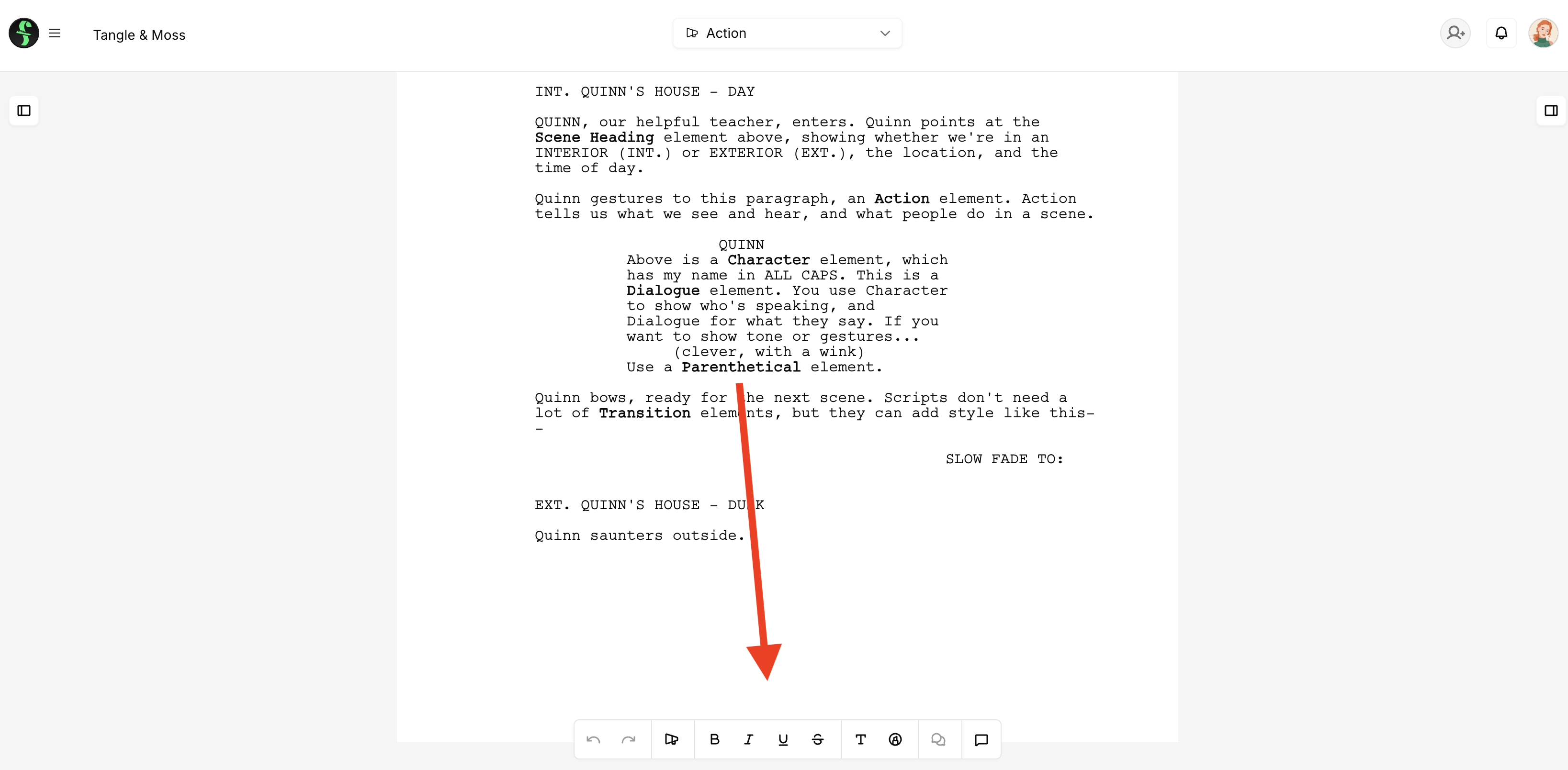 The Floating Toolbar lives at the bottom of your screen in Final Draft Writer: